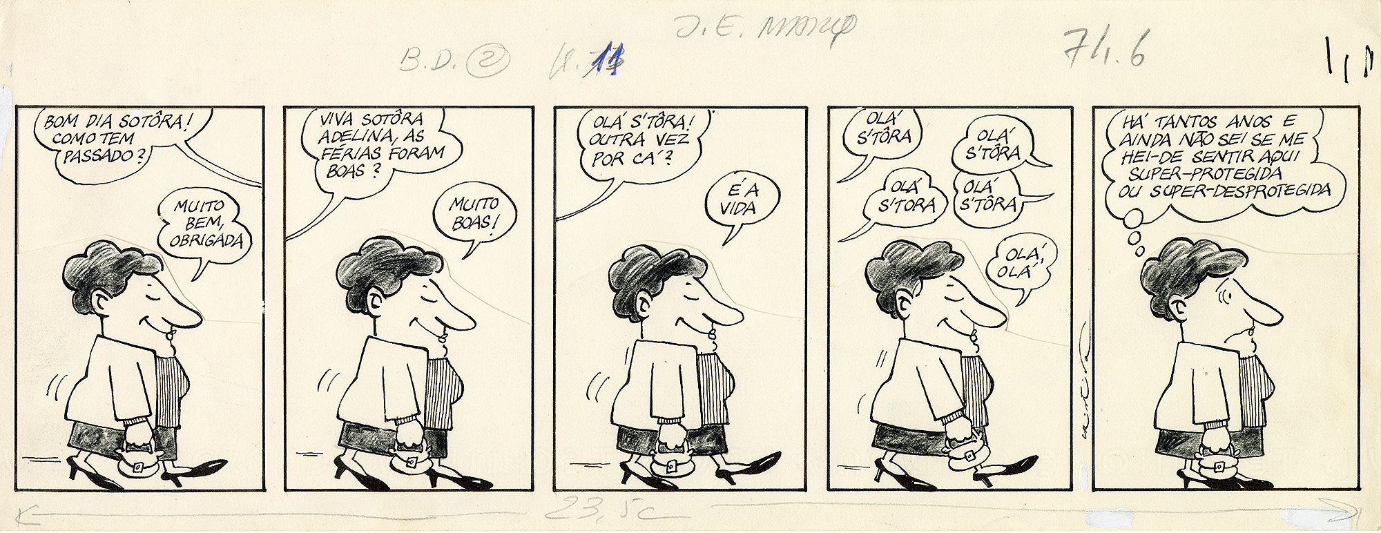 Cristina Sampaio's clear lines have come a long way. It begins with graphite and ink lines in comics and union newspaper strips, then passes through the twenty children's books that accompany the transformation of her gouaches in Digital Illustrator, until settling on the inexhaustible vein of political commentary that guides her professional work these days. Resident illustrator of the Público newspaper since its founding, and a long-time contributor to the weeklies Expresso, O Independente, the French Alternatives Économiques, and the Austrian Kleine Zeitung, Cristina Sampaio (Lisbon, 1960) already has a solid career spanning four decades dedicated to humorous drawing. Make no mistake: the clear line of digital purity is quite black and adept at delving into the analog and contradictory human nature. It's the line of a polygraph trained to catch the liars, the sly, and the stupid of the entire planet; it's a mirror of kindly colours that reflects our smile, deeply yellow. It's a line without master or disciple, a rare avis of Portuguese and international comic drawing, as simple in appearance as it is in depth and sophisticated in architecture, a fluid line that follows rigorous geometries and disorganizes into kilometer-long noses and tentacular arms that end in four economical fingers. Circus contortionists, Cristina's drawings are not constrained by the laws of anatomy or perspective, and their anamorphism lacks neither realism nor words.